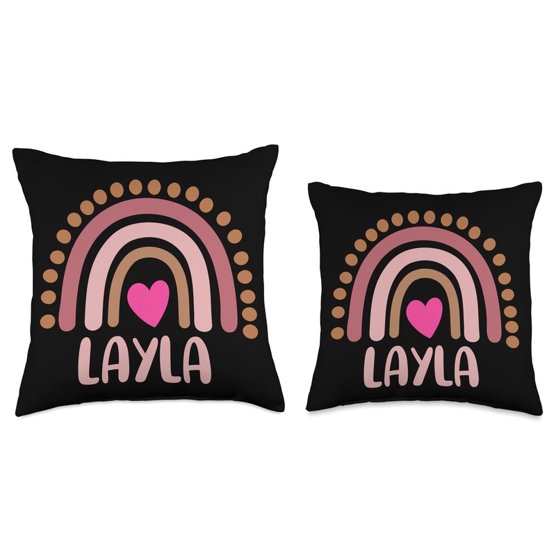 Layla Name Cute Personalized Heart Love Rainbow Throw Pillow