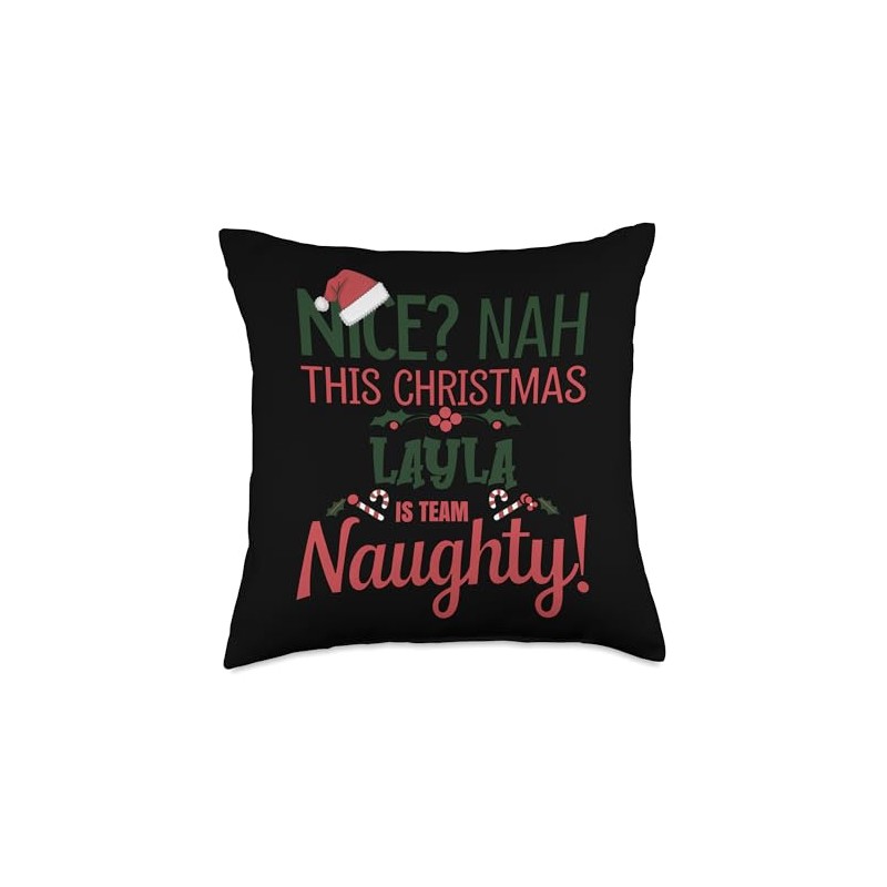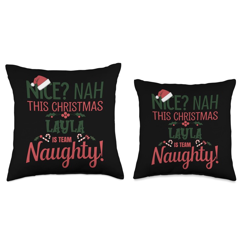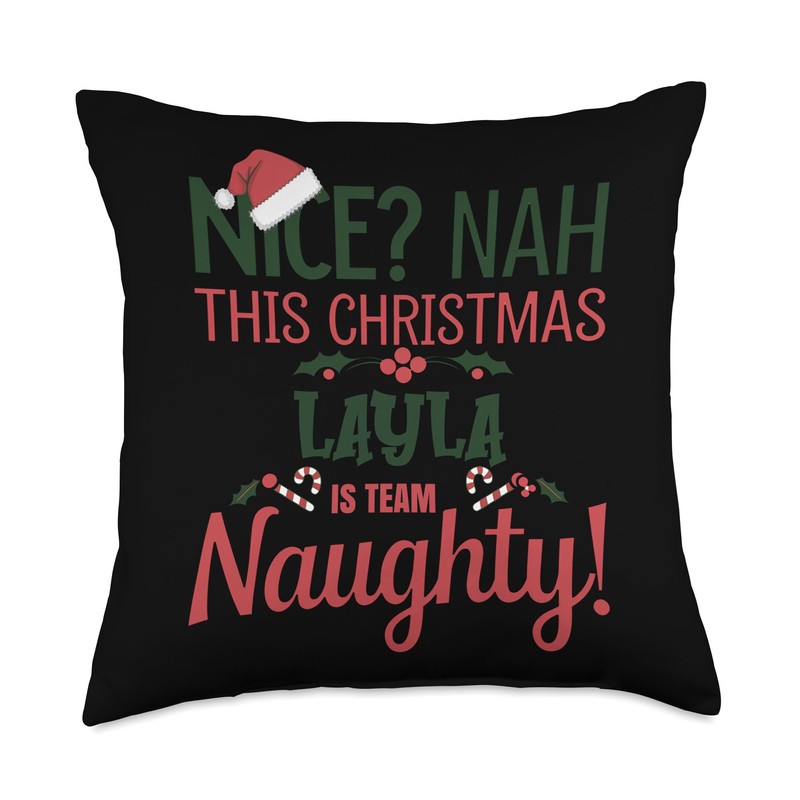 LAYLA Personalized Christmas Naughty Nice LAYLA Name Throw Pillow