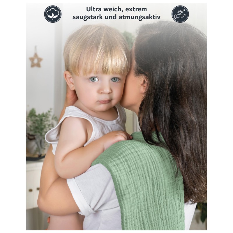 - Versatile: our cotton muslin cloths are perfect as a shoulder scarf for baby burping, for absorbing milk residue when breastfeeding or feeding, as clothing protection, as a soft head pad, cloth nappy, etc.