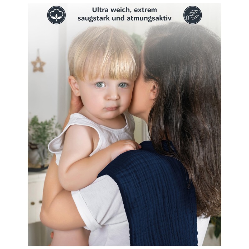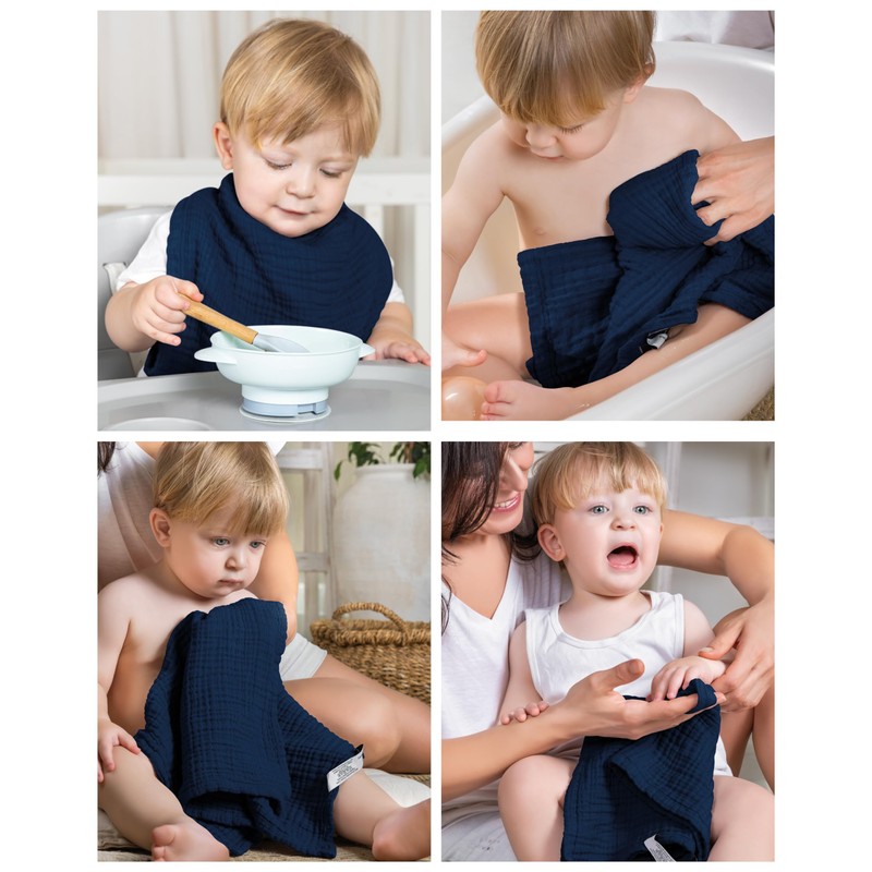 - Versatile: our cotton muslin cloths are perfect as a shoulder scarf for baby burping, for absorbing milk residue when breastfeeding or feeding, as clothing protection, as a soft head pad, cloth nappy, etc.