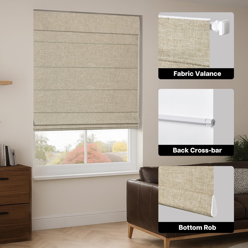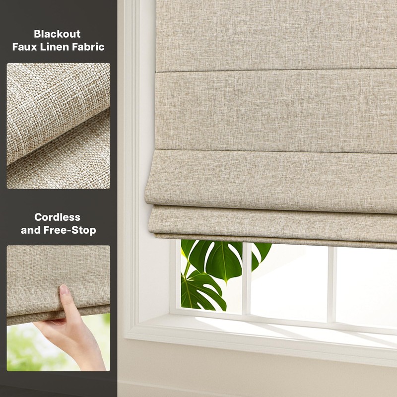 LazBlinds LazBlinds No Tools No Drill Cordless Roman Shades for Windows, Blackout Thermal Insulated UV Blocking Window Blinds, Lightweight Fabric Blinds for Indoor Windows, 26" W x 60" H, Blackout - Beige
