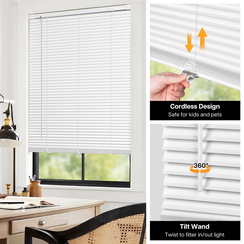 - Cordless Blinds for Windows: No more exposed dangling cords. Providing a more modern and cleaner appearance to every room and a safe environment for home with pets and kids. Simply hold the bottom rail to lift or lower the blind down.