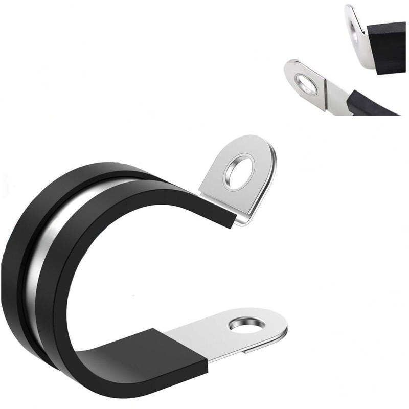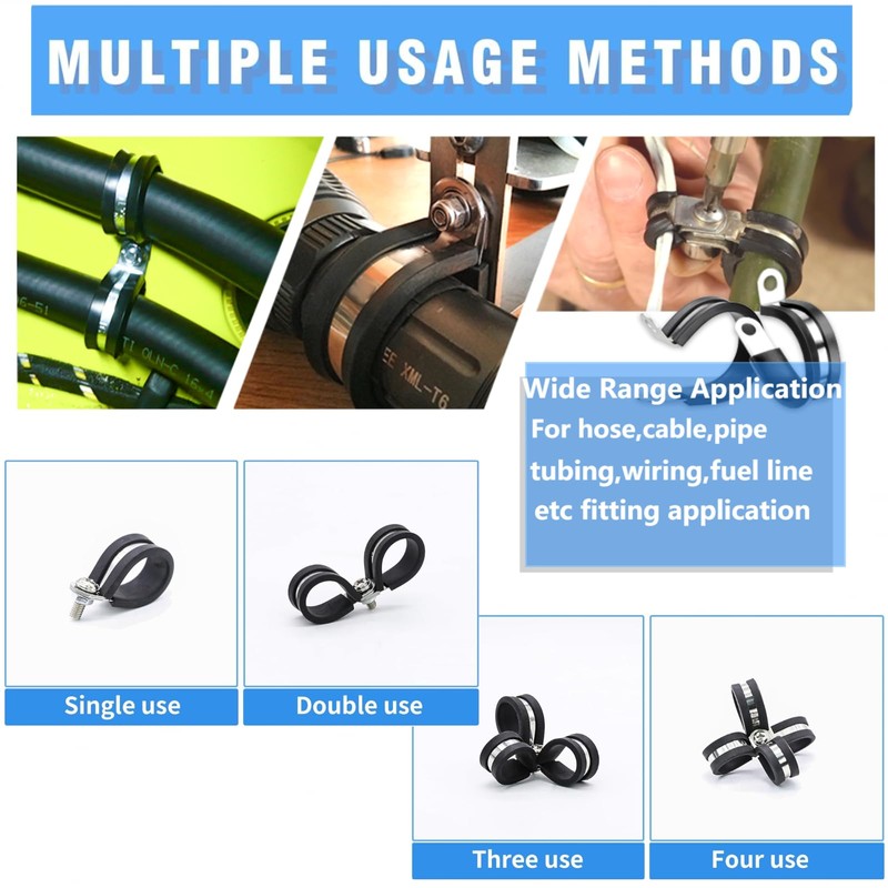 - [Updated Riveted Reinforce] the upgraded double Riveted Reinforce cable clamps will be more firm in the use process, and not easy to deform, can be worked lasted for years.The quality rubber insulation on the clamps held up flawlessly. It is pliable which protect the tube well and keeps the clamp securely in place.