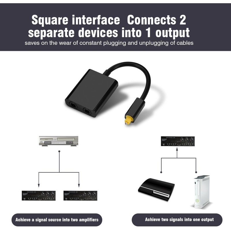 Lazmin Digital Fiber Optic Splitter, 1-in-2-out Fiber Optic Audio Splitter Fiber Optic Adapter Black and White (Black)