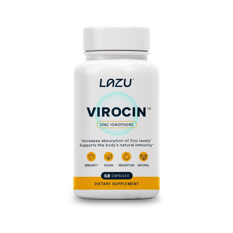Lazu Virocin - Zinc Supplement - Zinc Ionophore | Zinc, Vitamin C, Vitamin D3 | Enhanced Immune Support and Rapid Absorption | 60 Capsules