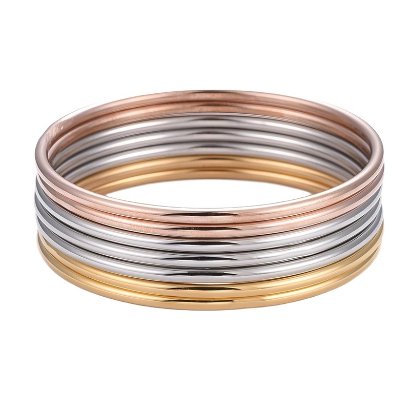Lázuli Accesorios Set de Pulseras, Acero Inoxidable con Chapa de Oro 18k, 6.8 cm de Diámetro, 7 Piezas (Oro Rosa, Plateado)