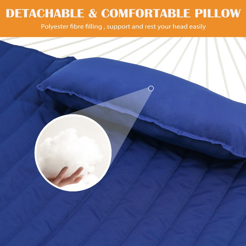 Lazy Daze Hammocks 2 Person Hammock Pad with Pillow, Double Polyester Quilted 78" x55" Replacement Hammock Pad for Rope Hammock, Blue