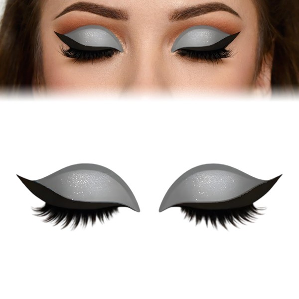 Lazy Eye Shadow Eyelash Patch,Reusable Eye Makeup Stickers With False Lashes & Eyeshadow, Eyeshadow Eyelash Stickers,Natural Waterproof Reusable Colorful Eyelid Line For All Eye Shapes(Silver)
