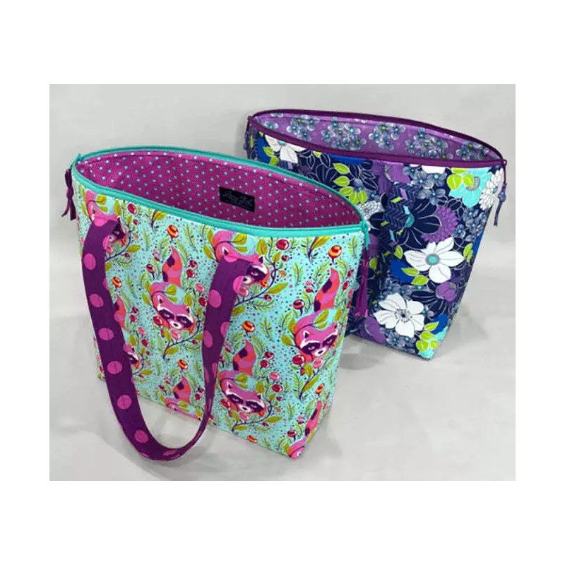 Harper Holdall is the perfect zip top tote to hold all you need for crafts, a day on the go, a quick getaway and more. Stiff Stuff Firm interfacing from Lazy Girl Designs gives this bag incredible structure to stand tall. The double-pull zipper and Joan's innovative "Tidy Ends" installation means the zip opens all the way to the side seams and stands wide open for easy access. Large tote, shoulder straps, zippered main compartment with inside pocket. Features: Joan's easy Tidy Ends zipper installation, manage directional fabric, 60+ color step-by-step photos, crisp boxed corners, presser foot and stitch recommendations, pressing and finishing tips, pattern tested for the Lazy Girl Designs accuracy and quality you know. Rotary cut project. No pattern pieces included. Uses Stiff Stuff Firm and Face-It Soft by Lazy Girl Designs, plus one 30" double-pull zipper. Size: 13" W x 13" H x 6" D.