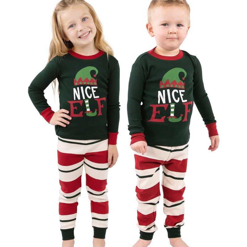 Lazy One Matching Family Christmas Pajamas, Elf Matching Christmas PJs for Family, Adult Tees & Pants Separates (Nice Elf Set, 4T)