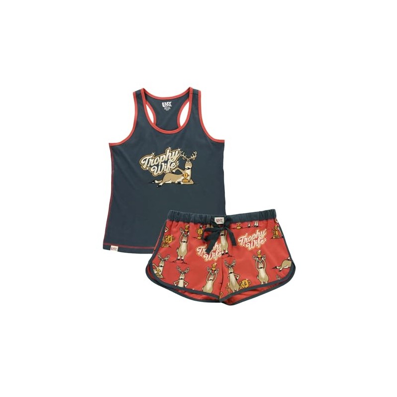 Lazy One Matching Pajamas for Women, Cute Pajama Shorts and Tank Top Set, Hunting (Trophy Wife, Small)