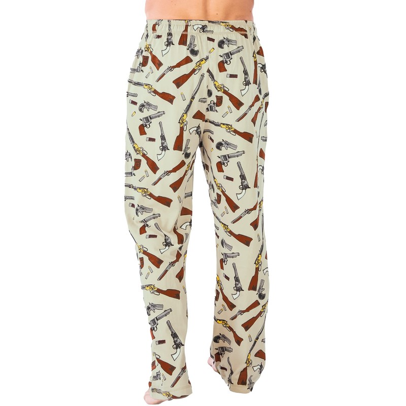 - FUNNY DESIGNS: This pair of pajama pants features a humorous design of a old western guns. These novelty pants are sure to make you laugh with their clever jokes.