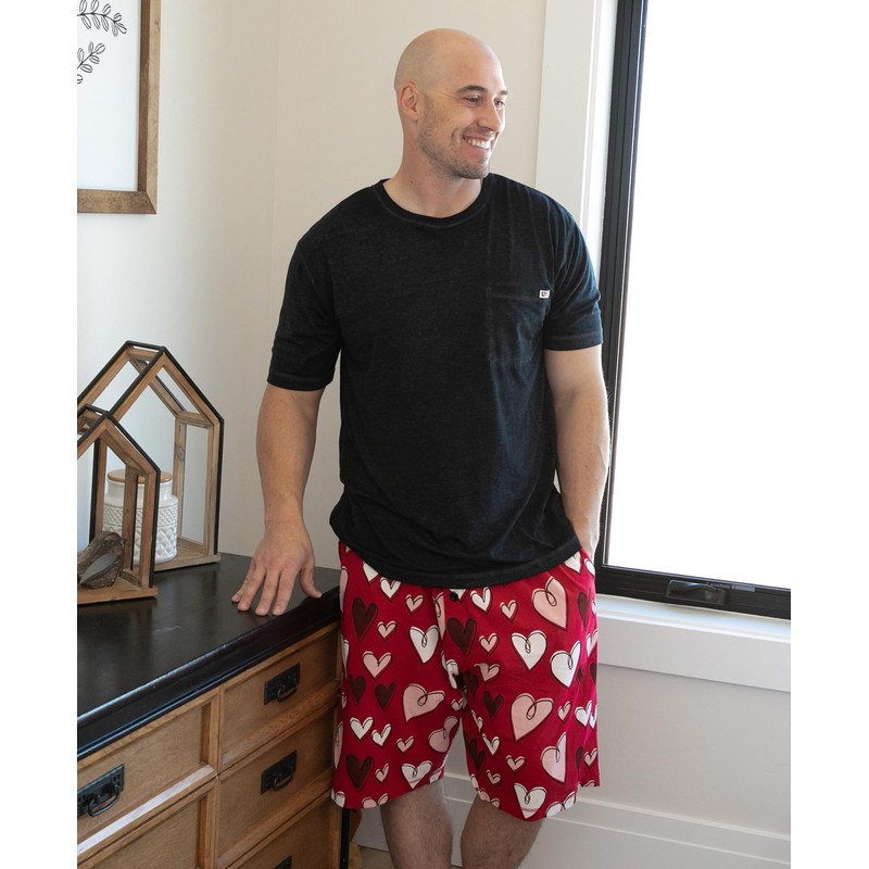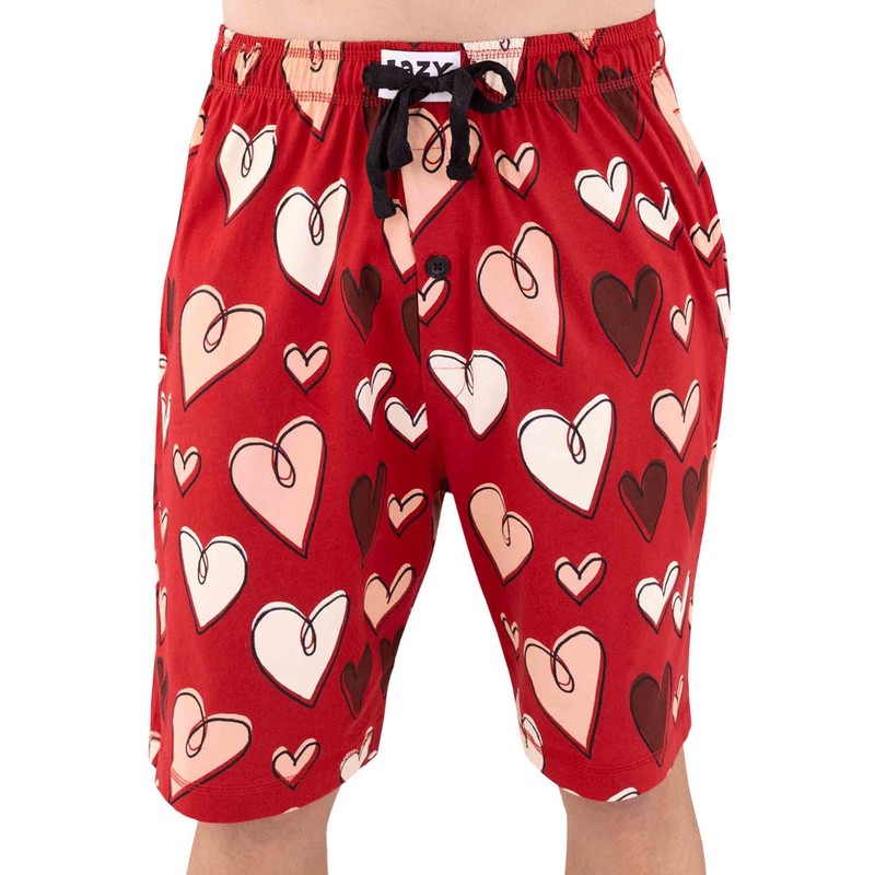 Lazy One Pajama Shorts for Men, Men's Pajama Bottoms, Sleepwear, Valentines Day (Hearts, Medium)
