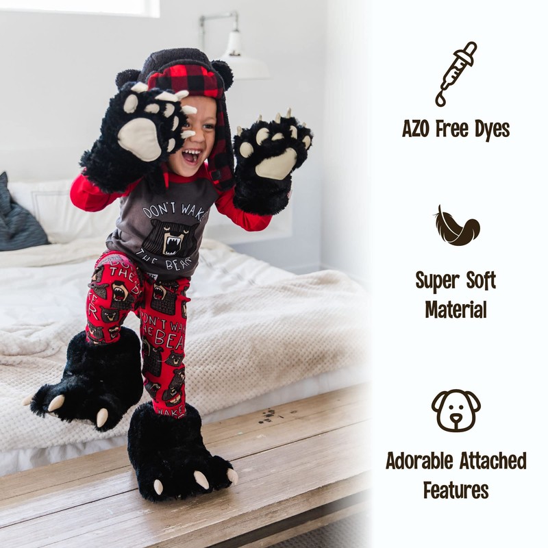 - COMFY AND WARM: Keep your little critter (or monster) warm from their head to their feet, whether the fun is indoors or outdoors. The animal gloves and paw shoes let your kid stay safe and warm without having to cover their costume up.