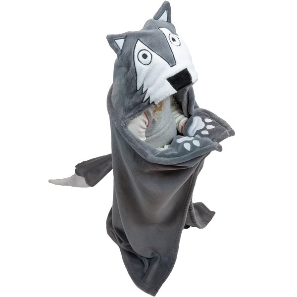 Lazy One Wearable Hooded Blanket for Kids, Animal Hooded Blanket (Wolf)