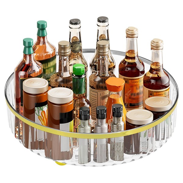 - 360° Rotating Acrylic Organizer: This clear acrylic lazy susan organizer spins smoothly to give you easy access to items from any side. Use it as a clear turntable organizer in your bathroom, kitchen, or on your dining table.