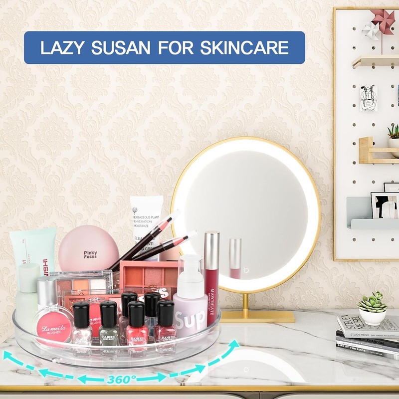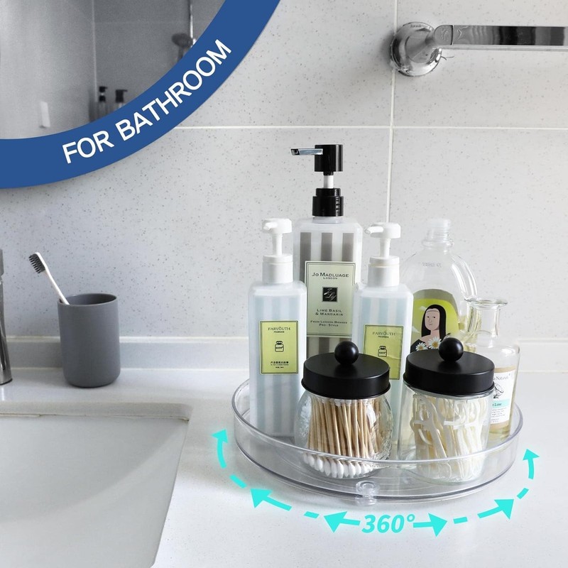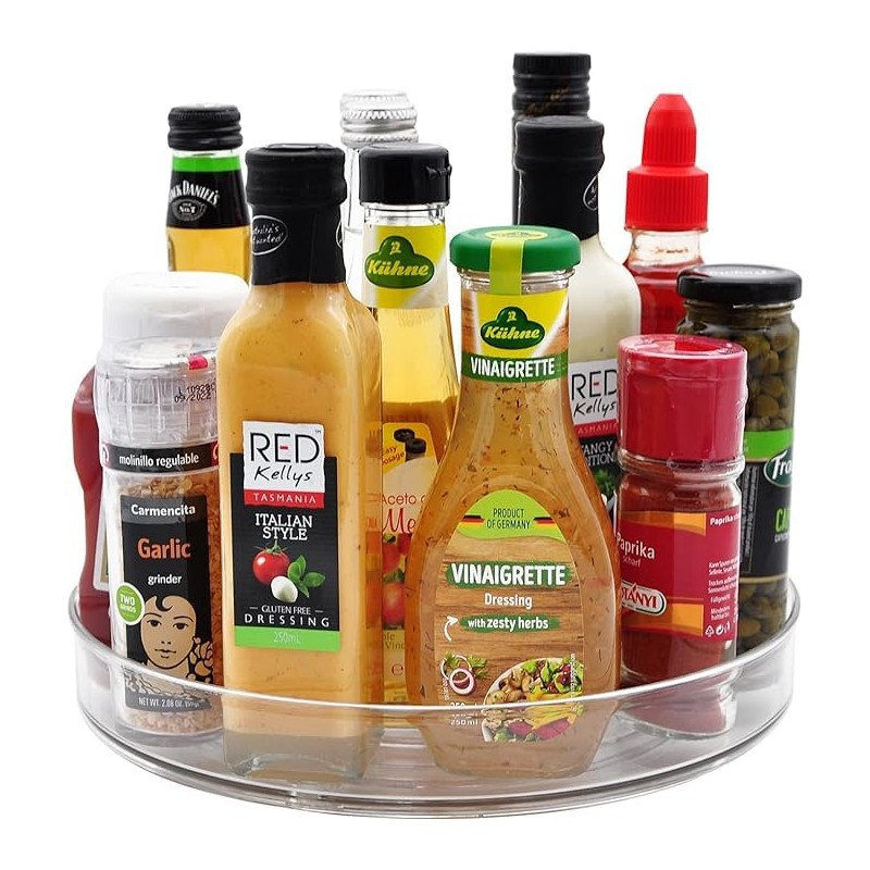 - Clear plastic and easy to clean: the transparent Lazy Susan is clearly visible for quick selection and inventory of items. You will always know what you have and then easily find what you want. Easy to clean with mild soapy water. Do not put in the dishwasher.