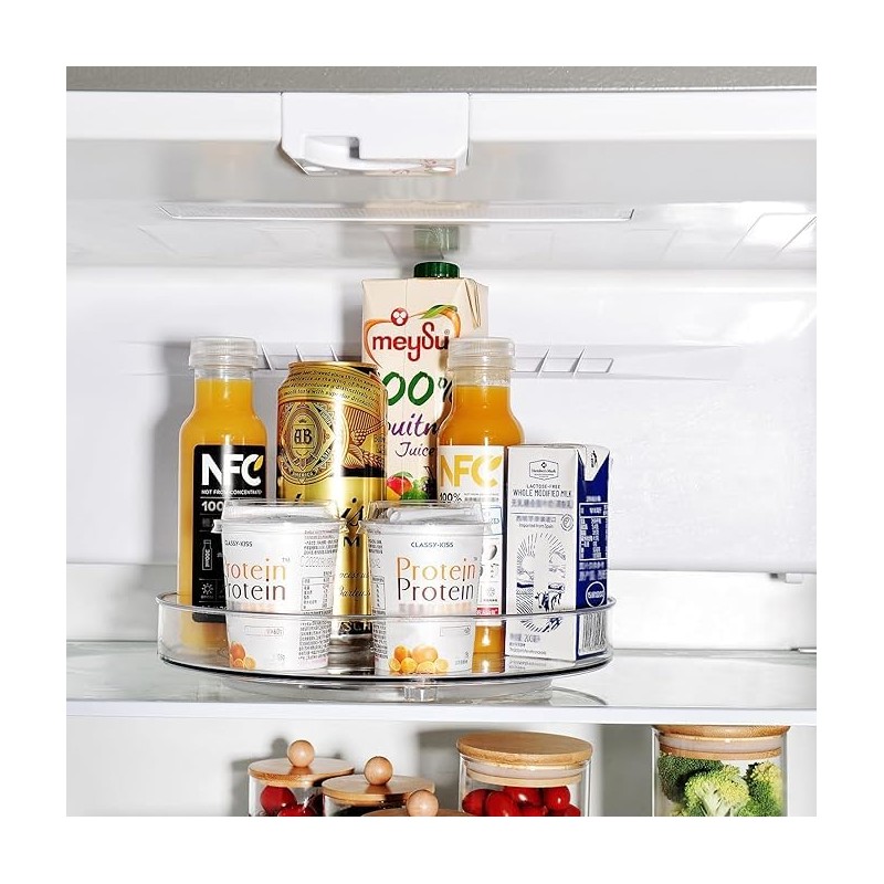 - High-quality materials: turntable fridge organiser PET material, BPA-free plastic, non-toxic and tasteless. Each turntable runs on durable, smooth-running stainless steel bead bearings for smooth glide every time, and does not wobble, strong resilient. Stable, robust, free rotating, and quiet.