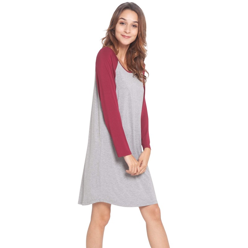 LazyCozy Womens Long Sleeve Nightgowns Viscose from Bamboo Sleepwear Soft Nightshirt Lightweight Sleep Dress, Heather Grey/Wine, Large