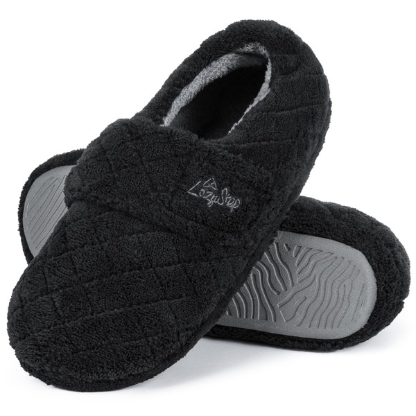 LazyStep Women's Nana Adjustable Slippers with Wide Width, Soft Curly Memory Foam Loafer Closed Back Slippers for Ladies Indoor (Black, Size 7-8)
