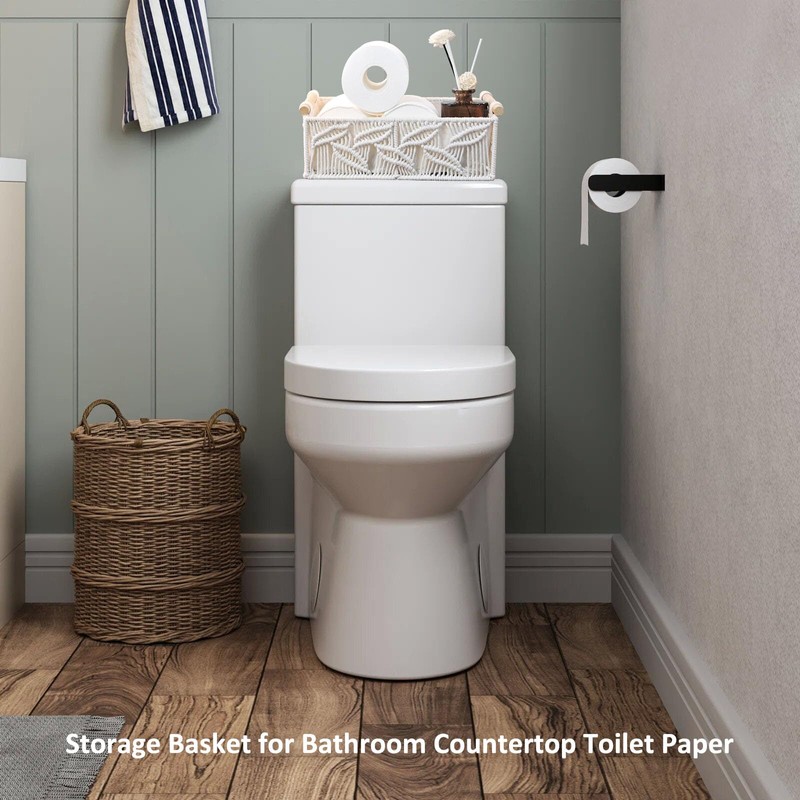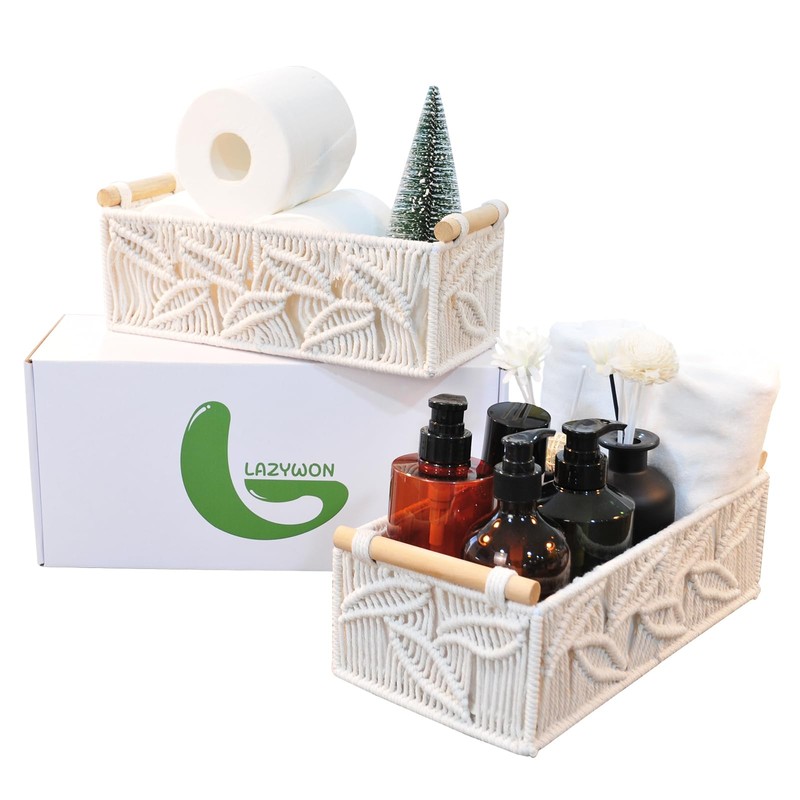 LAZYWON 2-Pack Boho Wicker Toilet Paper Baskets - Small White Bathroom Storage Baskets with Gift Wrap, Decorative Organizer for Toilet Tank Top & Countertop