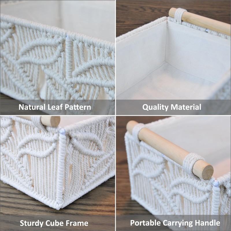 - Multiple-use Storage Baskets for Shelves - With a classic square frame and natural leaf pattern, this woven basket fits multifarious occasions, a beautiful decorative basket for living room, bedroom, kitchen, office, bathroom, etc.