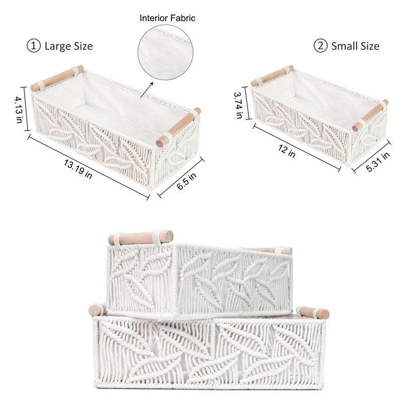 - Bathroom Organizers and Storage - Large basket 13.19"L x 6.5"W x 4.13"H, small basket 12"L x 5.31"W x 3.74"H. Size may vary within 1/4 inch due to handmade nature. This cotton rope woven basket can hold multiple rolls of toilet paper, perfect for anywhere of your house or office.