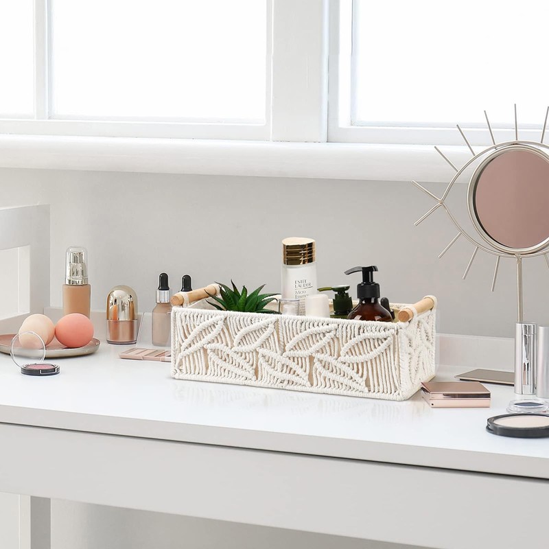 - Cube Storage Organizer - This toilet paper storage basket is made of high quality cotton rope, sturdy iron frame and solid wood handle. Perfect to hold vase, planter, air freshener, soap dispenser. This storage basket can be used not only in the bathroom, but also as a organizer in living room, bedroom or nursery.