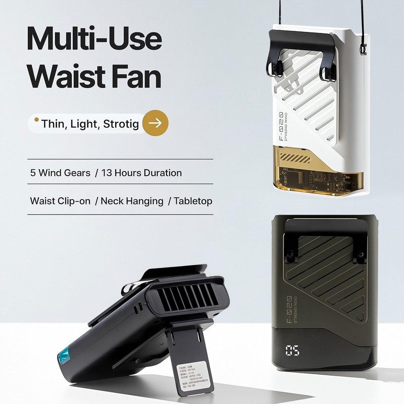 - 4-in-1 Hands-Free Versatility:Transform this portable fan into, ✔ Waist fan (clip-on), ✔ Neck fan ,(includes lanyard), ✔ Tabletop fan, ✔ Handheld fan, making it the perfect companion for outdoor activities and daily life.
