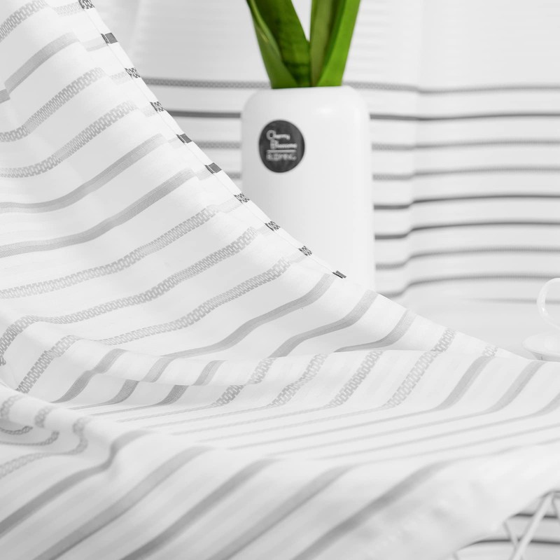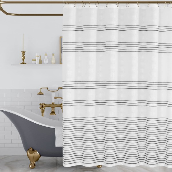 Lazzzy Shower Curtain for Bathroom Fabric Striped Boho Shower Curtain in Bath Modern Waterproof Shower Curtain 70x72 inches 1 Panel with Shower Curtain Hooks Grey and White