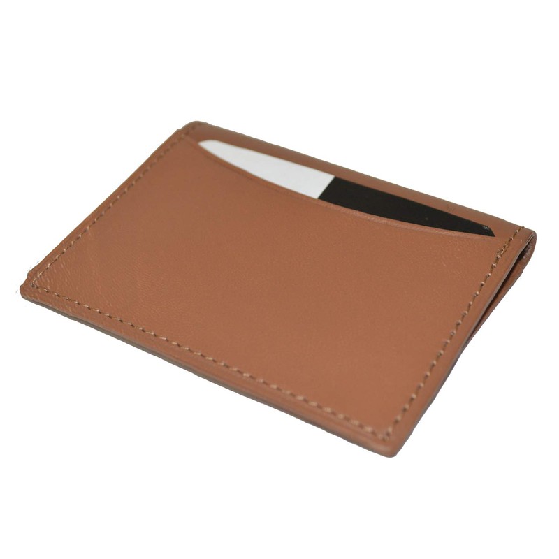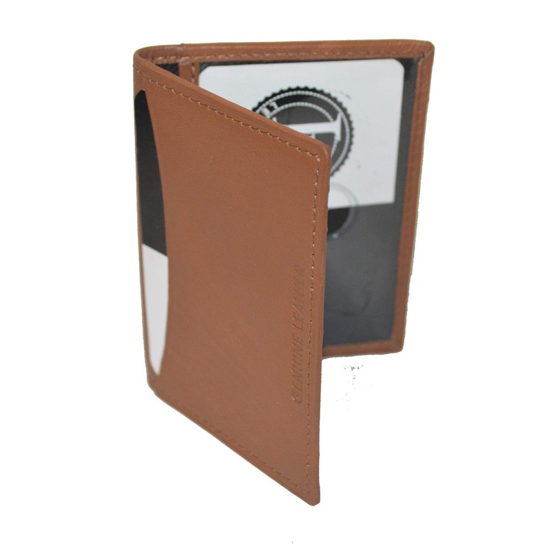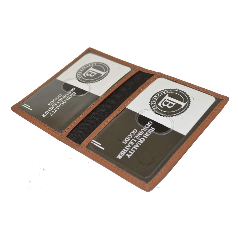 LB LEATHERBOSS Slim Thin Leather Credit Card Double ID Window Mini Wallet Bifold Driver License Safe (Tan)