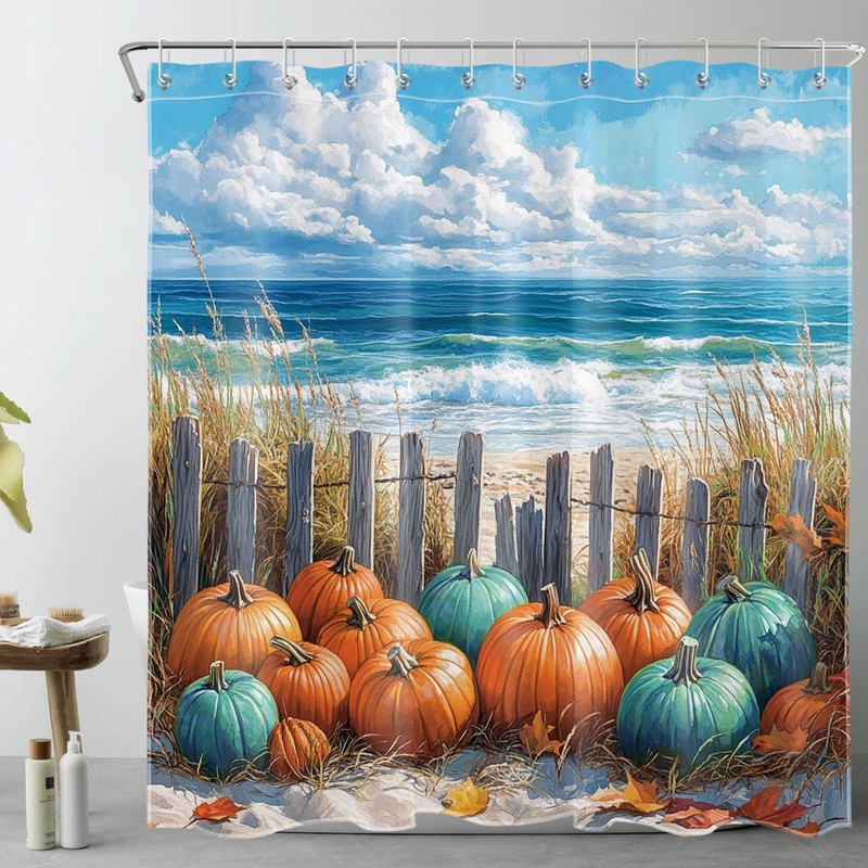 - Autumn Pumpkin Shower Curtain: Autumn beach pattern to decorate your bathroom; It is not only a bathroom curtain, you also can use it as door curtain, window curtain, etc; It can also be used outside, such as party backdrop, garden decoration.