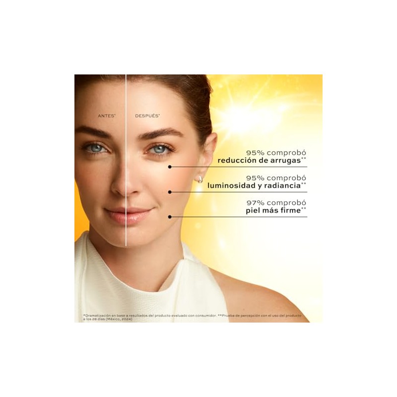 Acerca de este artículo SÉRUM FACIAL: Sérum que ayuda a combatir los signos del envejecimiento y proteger la piel de los agresores medioambientales. Impulsa la luminosidad de tu piel y reduce las arrugas profundas. VITAMINA C: Incorpora un potente 20% de Complejo con Vitamina C, diseñado para asegurar que tu piel luzca más luminosa y radiante, mientras reduce visiblemente las arrugas y mejora la firmeza; antioxidantes que protegen la piel de los radicales libres y el daño ambiental e hidratantes que garantizan una piel suave y bien nutrida BENEFICIOS: Mejora la luminosidad de la piel en un 44%, proporcionando un brillo natural y radiante en solo 30 minutos; experimenta menos arrugas profundas en solo 14 días de uso continuo. No solo transforma la apariencia de la piel, sino que también refuerza su vitalidad, haciendo de este serum facial un esencial en tu rutina de cuidado diario.