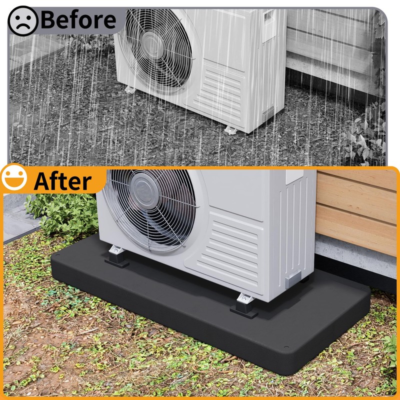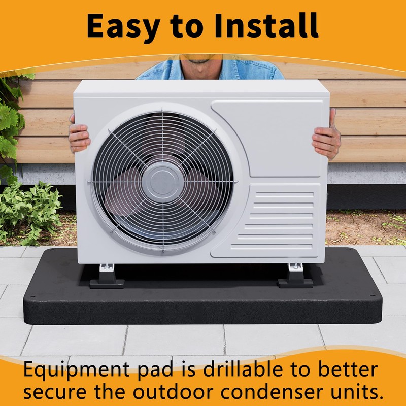 - Easy to Install - This equipment pad is easy to install.Just place the mini split air conditioner condenser pad on flat soil or a hard surface.Provides a level surface on the ground and improves performance and longevity by keeping equipment elevated and safe.