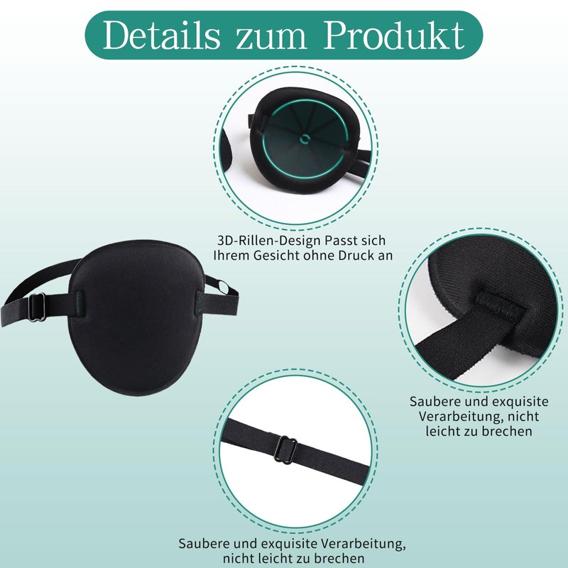 - Packungsinhalt: 2 schwarze Augenklappe, handgenäht, 3D Rillendesign, kein Druck auf den Augapfel beim Tragen, wiederverwendbar, widersteht starken Lichteinflüssen.