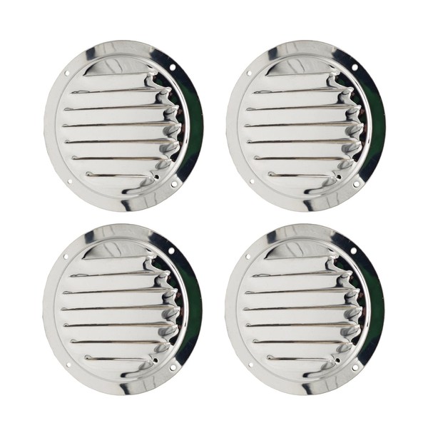LBKYJ 4 Pack 5"" Round Louvered Air Vent, 316 Stainless Steel Marine Boat Vent Ventilation Ventilator Cover, Silver