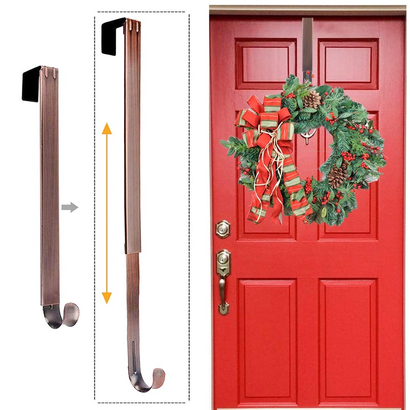 - ❤CONSIDERATE DESIGN: Christmas wreath hanger, no issues with opening or closing the door. Adjustable wreath hanger, Length extendable to hang wreath at varied heights
