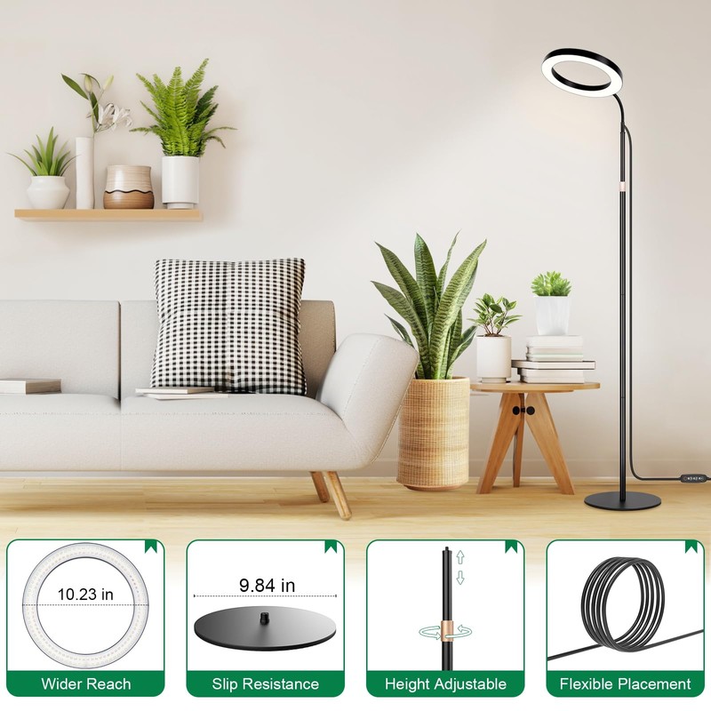 LBW 10.2in Grow Lights for Indoor Plants Full Spectrum with Stand, Floor Plant Growing Lamp for Large Plants, Auto ON/Off Timer 4/8/12H, 4 Dimmable Levels, 47.2-63 in Adjustable Height