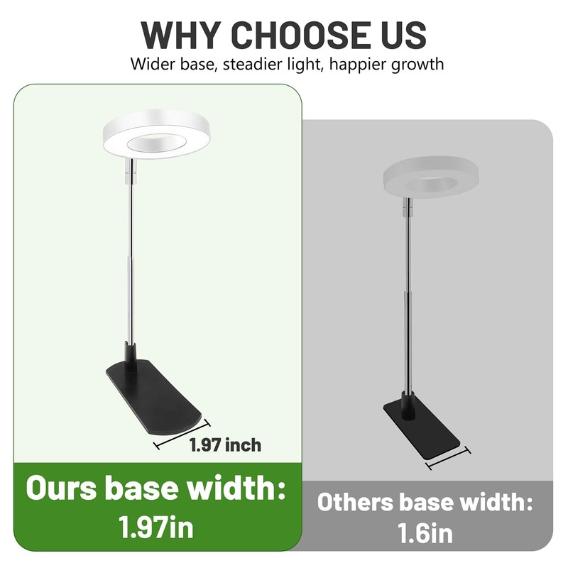 - 【Grow Lights for Indoor Plants】LBW grow light is tailored to meet the unique needs of plant lovers, this light offers three modes timer auto and 4 adjustable brightness levels for optimal growth. Its unique design, easy assembly, and space-saving base make it a perfect fit for any home decor, is perfect for various indoor plants, including succulents, herbs, and orchids etc. NOTE: The product stand needs to be pressed down by the flower pot to be stable.