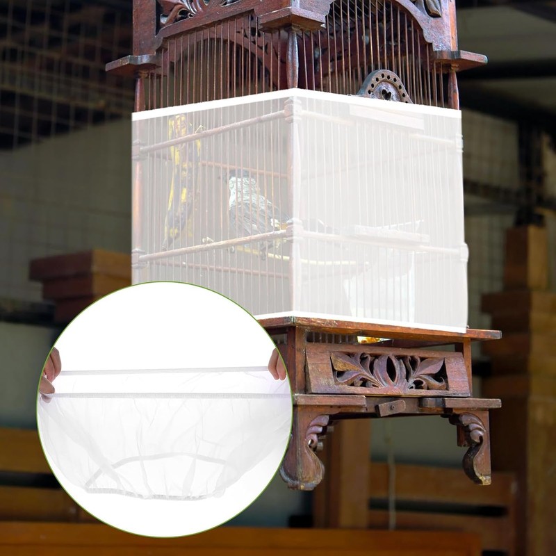 Coloca la falda alrededor de la base de la jaula de tu pájaro. Asegúrate de que el elástico esté bien ajustado tanto en la parte superior como en la inferior para evitar que se mueva. Ideal para jaulas de diversas formas y tamaños.