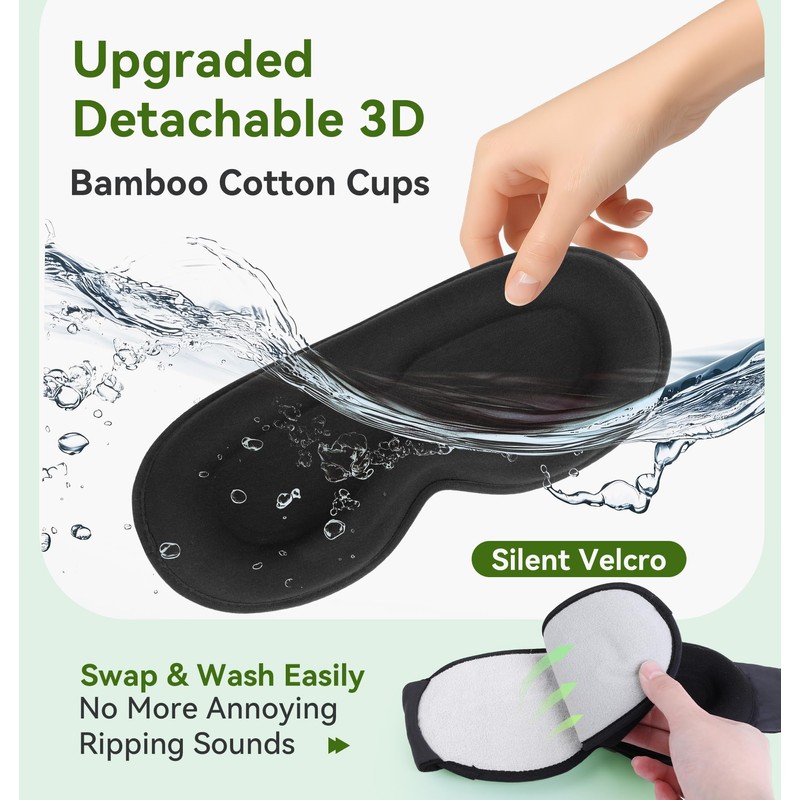 - Upgraded Detachable Cup Cover Design: You only need a few seconds to quickly remove the gravity bead cup cover for washing, this sleep mask with bluetooth headphones use a silent cotton design to ensure that there will be no annoying "tearing" sound when you remove the cup cover. Note: Because this bamboo cotton cup cover is filled with gravity beads, in order to extend the bluetooth sleep mask use times, the cup cover can only be hand washed, not machine washed