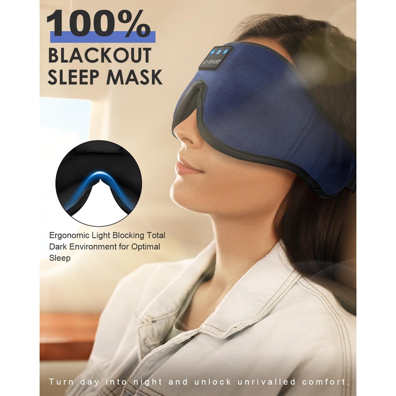 - Sleep Headphones & Bluetooth Sleep Mask & Sleep Eye Mask 3 in 1Our new generation Bluetooth sleep headphones Sleep Eye Mask is the latest and unique one in the market! The bluetooth eye mask for sleeping features a soft bluetooth headband design with wireless sleep headset inside, allow you to enjoy hands free music, and protect you from being disturbed by your mess hair and sweat. Bluetooth sleep mask is perfect suitable for Nap,Insomnia, Air Travel, Meditation,Yoga as well as sleeping