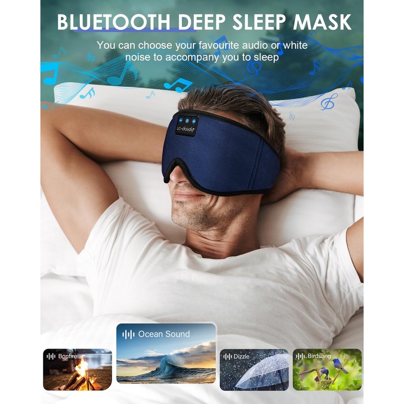 - REAL ICE SILK FABRICBluetooth sleeping headphones sleep mask is made of real ice silk, super soft just as smooth as baby's skin. The bluetooth sleep eye mask is the perfect Sleeping Headphones for side sleepers, choose LC-dolida sleeping bluetooth headphones, fall asleep fast, stay asleep and have a sweet dream