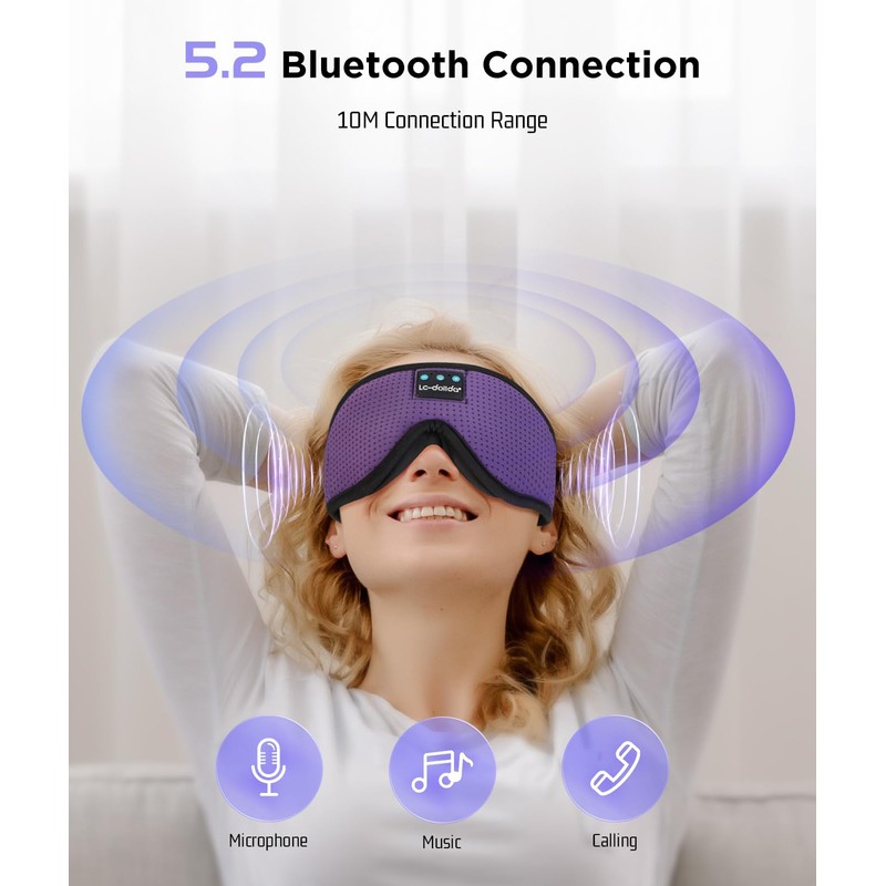 - 3-in-1 Sleep Headphones, Bluetooth Sleep Mask & Eye MaskOur latest Bluetooth sleep headphones with a soft headband design allow you to enjoy music hands-free while blocking out disturbances from messy hair and sweat. Ideal for naps, insomnia, air travel, meditation, yoga, and sleeping.