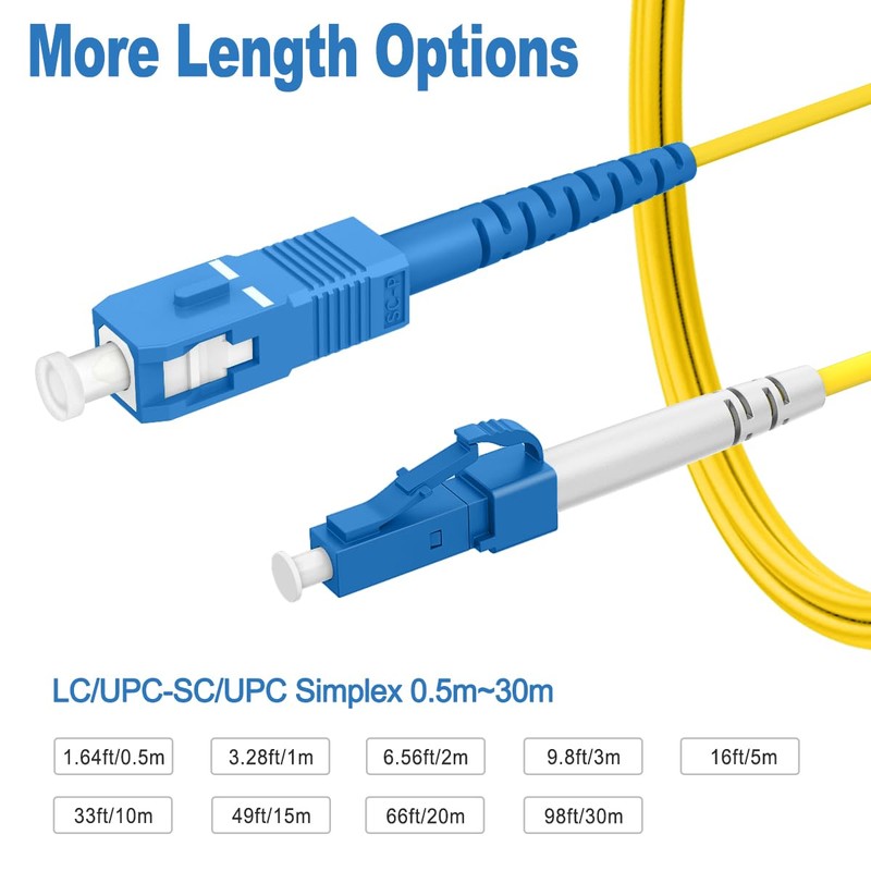 - Efficient and High-Quality Fiber Patch Cableββ 6ft/2m LC/UPC to SC/UPC fiber optic internet cable ensures fast data transmission and is immune to interference. Its LSZH cable jacket and dust caps provide safe and reliable operation. It meets industry standards for insertion and return loss.