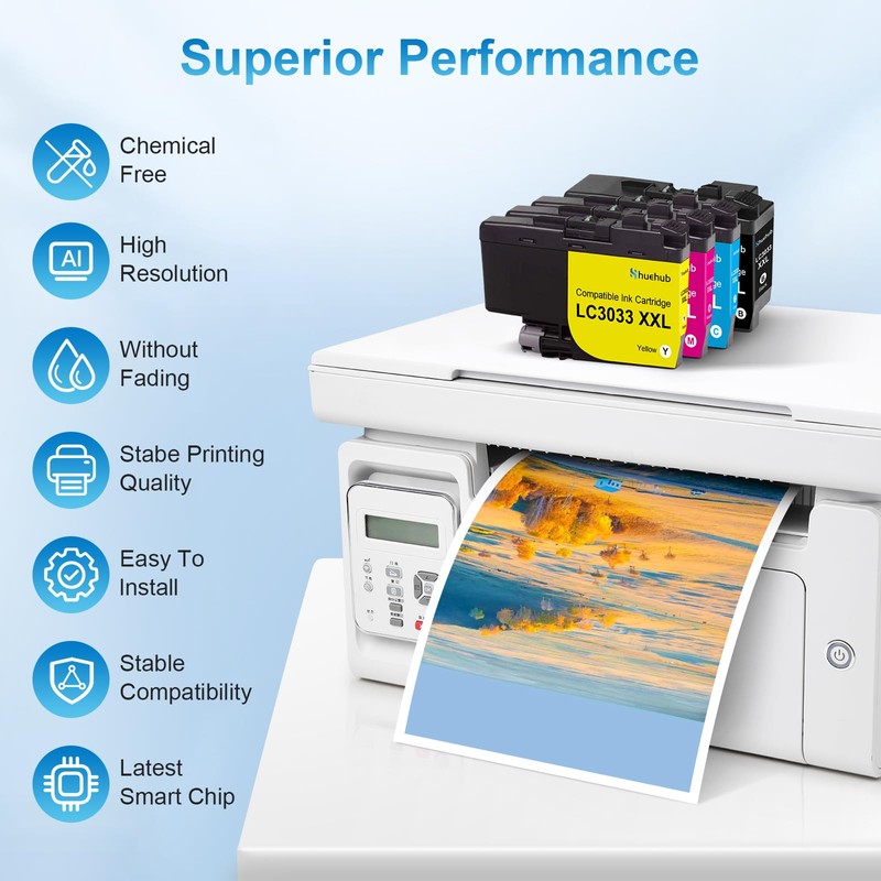 • Excellent Performance: These LC3033XXL Ink Cartridge have been subjected to stringent quality control tests to provide you with high-quality images and text for all your printing needs