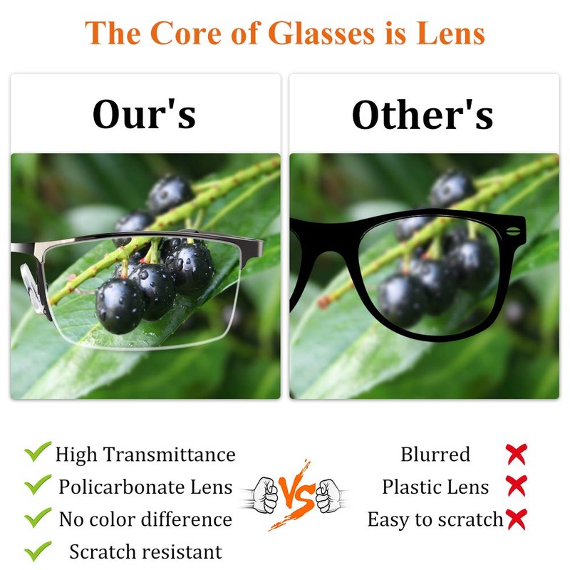 1. The core of glasses is lenses, apart from block harmful blue light and anti UV400 ultraviolet rays, we make sure all areas of the lens are clear and have accurate magnification.