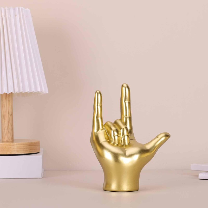 LCCCK Gold Hand Gesture Statue, Funky Home Decor Accent Finger Sculpturei, Love You Ornament Sign Language, for Cool Music Room, Countertop, Dining Table, Bookshelf, Aesthetic Decoration
