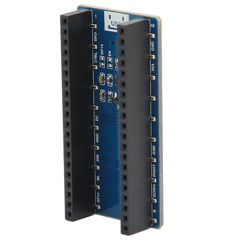 1、0.96inch Display: 160x80 resolution, IPS screen, 65K RGB color, the display effect is clear and colorful. 2、Universal: Universal LCD module, SPI interface, ST7735S driver, IPS display panel. 3、SPI Control: Use SPI control to ensure that it does not take up too many interface pin resources. 4、Accessories: Comes with a joystick and 2 buttons for easy expansion of applications. 5、Compatible: For Raspberry Pi Pico header compatibility, onboard female headers can be directly connected to for Raspberry Pi Pico for easy interaction.