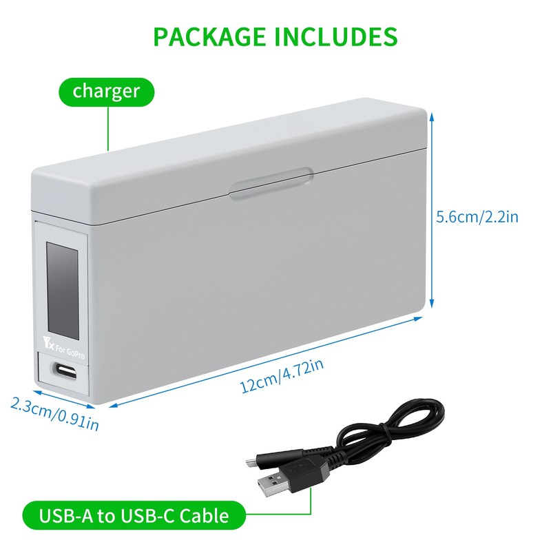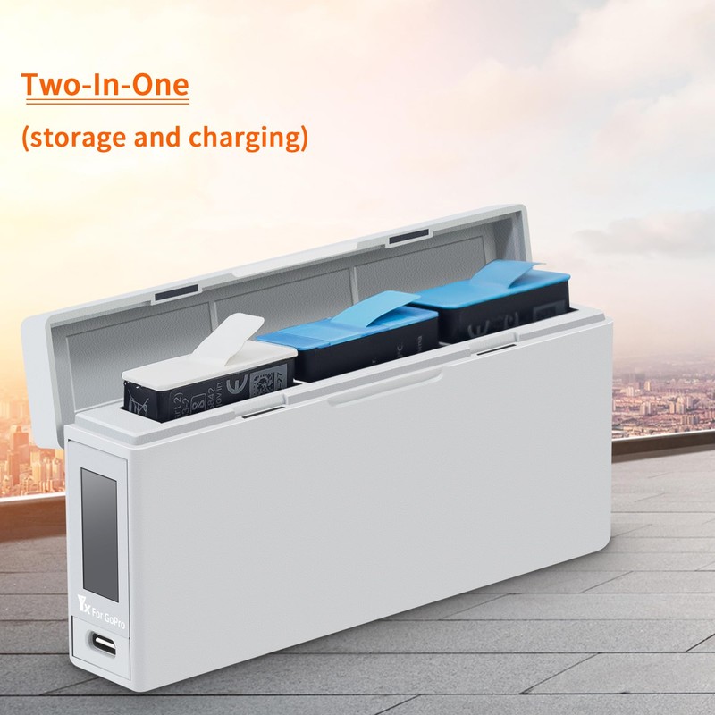 - battery charger for HERO12 Black,HERO 11 Black,HERO 10 Black,HERO 9 Black. It can charge three Enduro and standard Go Pro batteries at the same time